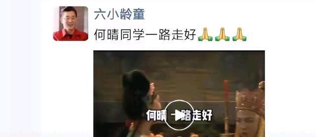 六小龄童说何晴小时候是他的同学,希望她一路走好。《西游记》里何晴饰演那个试探唐僧师徒取经的怜怜。