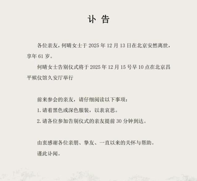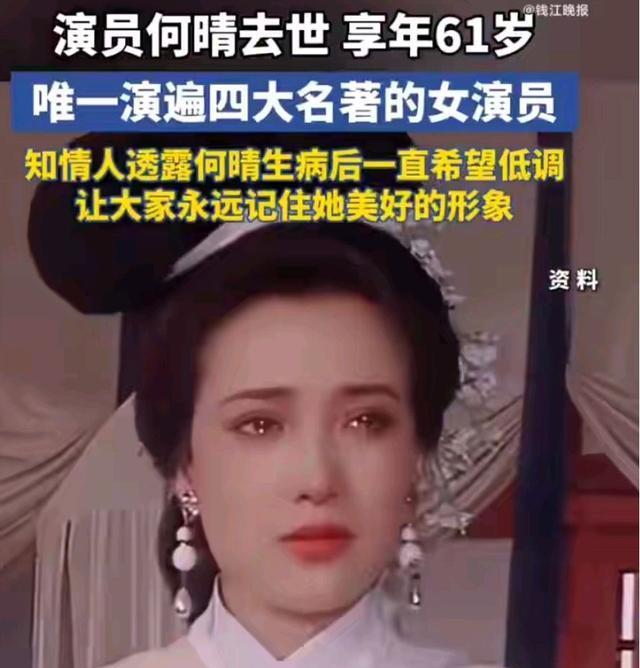 没想到何晴才61岁就去世了。许久没有消息,一有消息就是病逝。